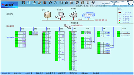 Acrel-3000電能管理系統采用全中文界面,操作簡單方便;運行穩定可靠的特點。點擊相應快捷按鈕即可進入相應的系統功能模塊;系統具有一次系統圖顯示,模擬圖顯示和網絡結構圖顯示;系統具有人機界面友好,顯示數據直觀,方便用戶查閱。