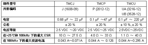 今天發布的器件的容值從0.1μF到220μF,在2.5VDC~25VDC內的公差低至±10%。電容器的工作溫度可以從-55℃到+125℃,在溫度超過+85℃時需降低電壓。