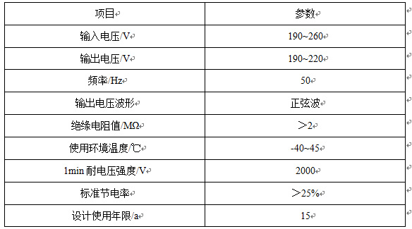 吧 GGDZ智能照明穩壓節電柜的技術參數如表1所示。節電柜機箱采用2mm厚冷軋鋼板,內外表層噴塑,防護等級為IP54,溫升小于80K。此外,這一節電柜具有自動、手動旁路功能,一旦出現故障可以自動切換為電網供電,切換過程中不會產生瞬時滅燈現象。