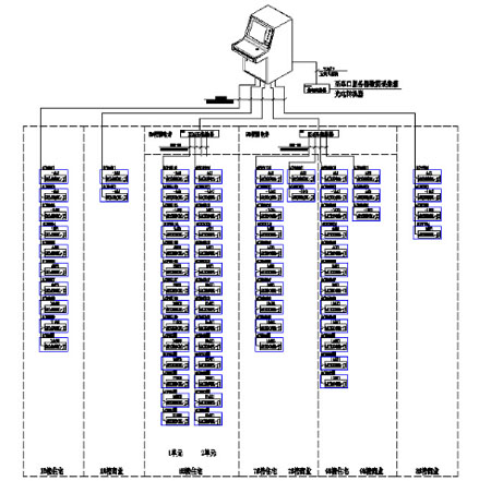 4.1.3 考慮到本項目中儀表數據量,客戶要求。本項目的主機選用琴臺式,主機放置在9#樓一層的消防控制室;并配置一臺數據采集器,此數據采集器放置離9#樓一層消防控制室較遠的4#樓強電井里,采集2#、3#、4#、5#樓及地下室漏電流探測器的數據之后再經光纖傳輸至消防控制室的監控主機。琴臺式主機界面簡潔,系統操作方便,適合本項目中的配電間環境和客戶的相關操作要求。