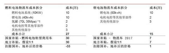 川財證券:政府對燃料電池汽車的補貼力度遠大于鋰電池汽車