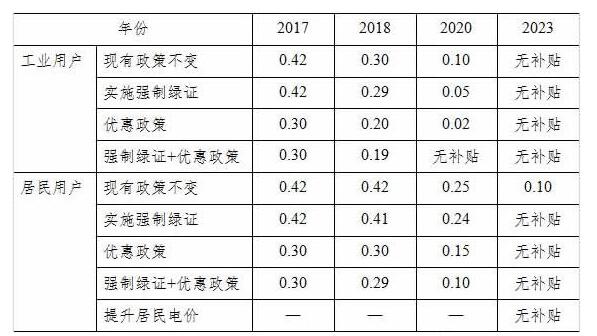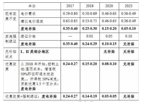 如果2018年能夠推出綠色證書強制交易,考慮利用三年左右的時間,通過適宜的政策設計,使綠色證書的價格達到0.05元/千瓦時左右,到2023年再達到0.1元/千瓦時左右,則預期2023年前光伏發電可以在上網側實現全面平價。