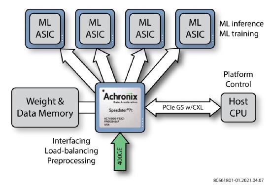 另一種選擇是在多芯片模塊中使用多芯片合封chiplets。這在基于FPGA的合封的數據編排模塊和機器學習引擎之間提供了高速互連的好處。Achronix支持所有這些實現選項。