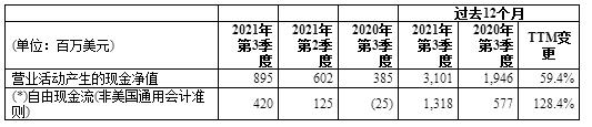 營業利潤提高84.0%,總計6.05億美元,去年同期為3.29億美元。公司的營業利潤率同比增長660個基點,占至凈營收的18.9%,而2020年第三季度為12.3%。