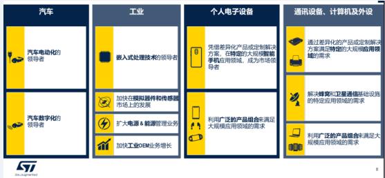 在工業(yè)領域,意法半導體兩大重要的目標是加快模擬和傳感器的業(yè)務發(fā)展,擴大電源和能源管理業(yè)務。為此,意法正在擴展模擬產(chǎn)品組合,增加通用和專用模擬解決方案,尤其是投資研發(fā)重要的工業(yè)技術(shù),例如電機控制、電源、計量和電流隔離技術(shù)。