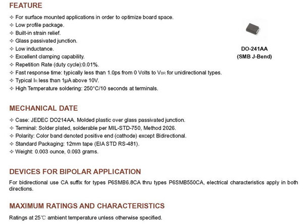 P6SMB SERIES貼片式瞬態抑制二級管產品詳情