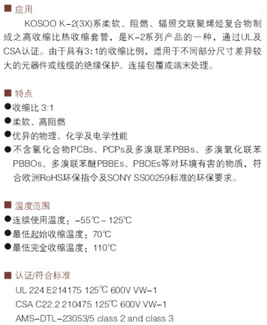 (K-2)(3X)高收縮比阻燃聚烯烴熱縮管產品詳情