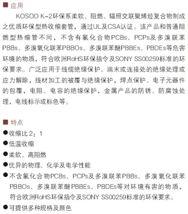 聚烯烴熱縮管 K-2環保產品詳情