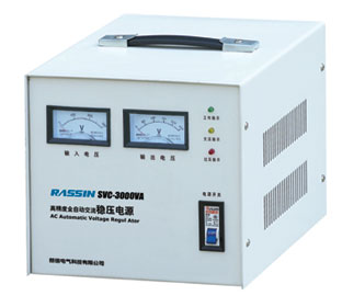 SVC(TND/TNS)高精度全自動單、三相交流長穩壓電源是本公司的接觸式調壓器、自動控制電路筆伺服電機所組成。當電網電壓不穩定或負載變化時,自動控制電路進行取樣、比較、放大、控制伺服電機帶動轉臂、電刷按所需要方向轉動,使輸出電壓調整定額值,而達到穩壓目的。