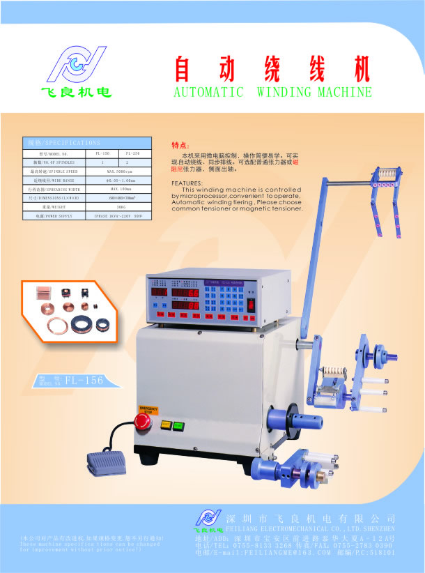 本機采用微電腦控制,操作簡便易學.可實現自動繞線,同步排線。可選配普通張力器或磁阻尼張力器 ,側面出軸,使繞線整齊 緊密 一致。