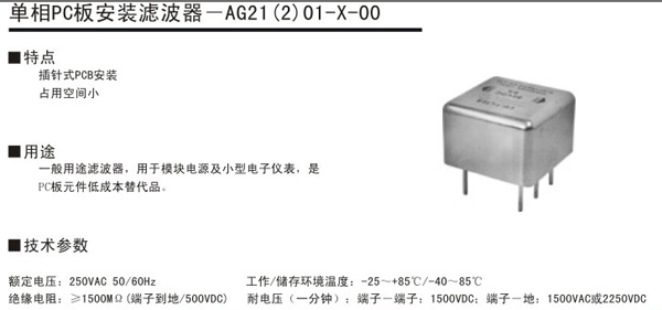 AG21(2)01-X-00單相PC板安裝濾波器產品詳情