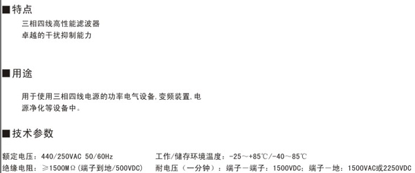 AS41(2)01-X-XX三相四線超高性能濾波器