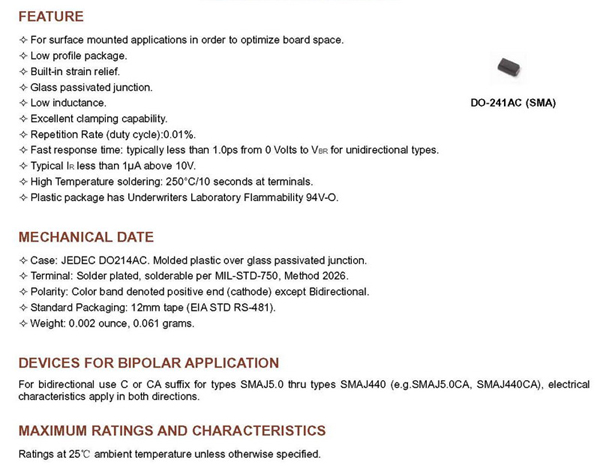 SMAJ SERIES貼片式瞬態(tài)抑制二級管產(chǎn)品詳情