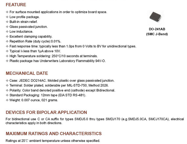 SMDJ SERIES貼片式瞬態(tài)抑制二級(jí)管產(chǎn)品詳情