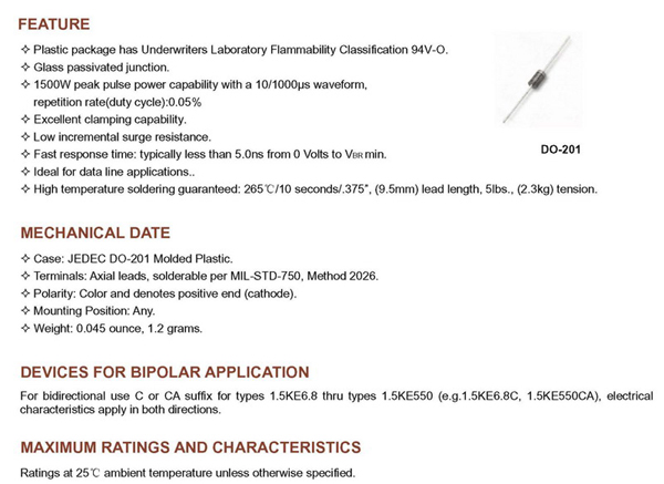 LCE SERIES低電容瞬態抑制二級管產品詳情