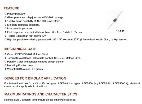 1.5KE SERIES 引線型瞬態(tài)抑制二極管產(chǎn)品詳情