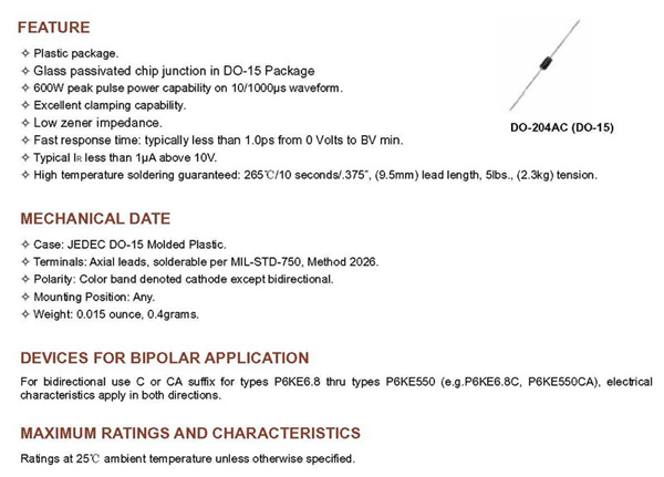 P6KE SERIES引線型瞬態(tài)抑制二級(jí)管產(chǎn)品詳情
