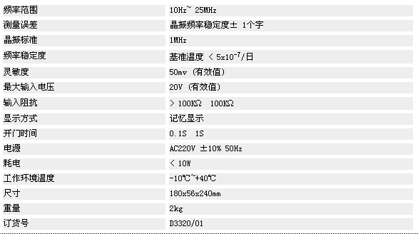 JH3320頻率計是對10Hz~25MHz頻率進行測量的一種便攜式儀器,七位數字顯示,主機集成化程度高,穩定、可靠、省電、輕便。