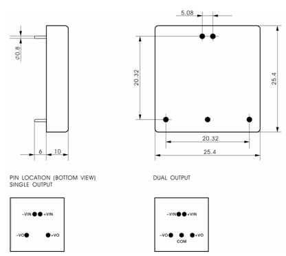 安裝尺寸(25.4L×25.4W×10Hmm):