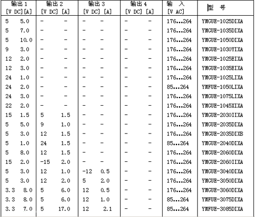 產(chǎn)品選型表: