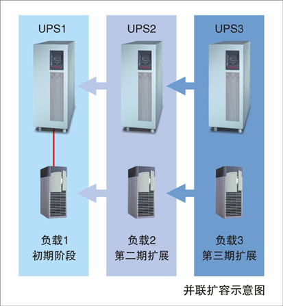 以往,您會因為考慮到未來設(shè)備的擴充,而在初期就規(guī)劃了大容量的UPS設(shè)備,這是一項很大的浪費。 現(xiàn)在, 您只要考慮您實際的電力需求, 規(guī)劃適當?shù)腢PS就可以了。 未來如果因為設(shè)備的擴充而需要相應(yīng)的電力擴充時, 只需要購買擴充部分的UPS, 將它并聯(lián)到原有的電源系統(tǒng)就可以了, 增加了規(guī)劃的彈性,并大大的減少了投資的浪費。