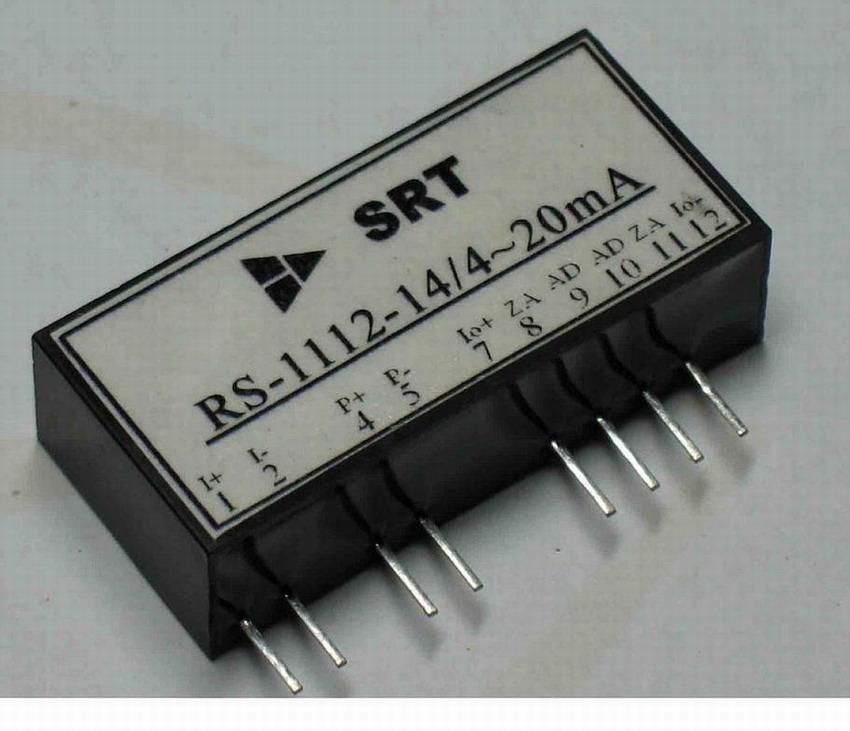 RS-1112系列模塊式直流電流隔離變送器,是一種將輸入的直流電流信號按比例轉換成與輸入信號隔離的標準輸出信號, 輸入直流電流信號可以是0-1mA、0-10 mA、0-20mA和4-20mA等,用戶也可以自定義,最大輸入電壓信號為50mA。輸出信號有4~20mA、0~20mA、0~5VDC、1~5VDC和0~10VDC等多種形式。輸入信號、輸出信號、輔助電源之間為3000VDC三隔離。