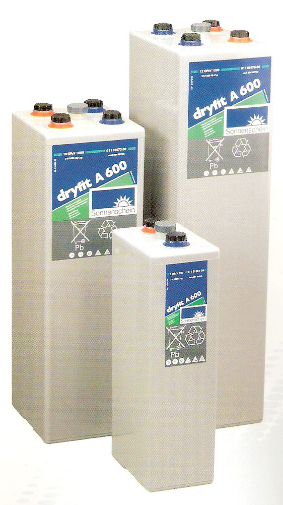 Exide 科技在歐洲通過長期的儲存開發能量與生產經驗而推出的高實用價值產品-德國Sonnenschein(陽光牌)dryfit A600膠體式(gel type)VRLA蓄電池。Dryfit A600采用膠體式電解液代替流動式電解液,兼且使用了具有突破性的管狀正極板,因此擁有維護量極低、對溫度變化有較寬的適應度和可靠的長壽操作。在各種環境嚴峻的領域中,如太陽能系統、鐵路系統、發電廠、機場等,都提供了屋企可以信賴的備用電源方案。