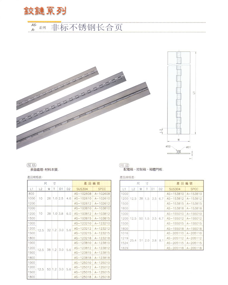 不銹鋼長合頁,長鉸鏈,鋼琴鉸