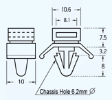 ‧使用方法 : 將機板開6.2mm孔,然後將固定座插入機板孔即可固定,再用鎖式紮帶結紮電線。