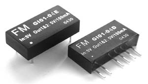 型號: GI01系列功率: 1W特性: Efficiency up to 80% Temperature Range:-40℃~+85℃ Twin Output Voltage UL64-V0 Package 1KVDC Isolation PCB Mounting