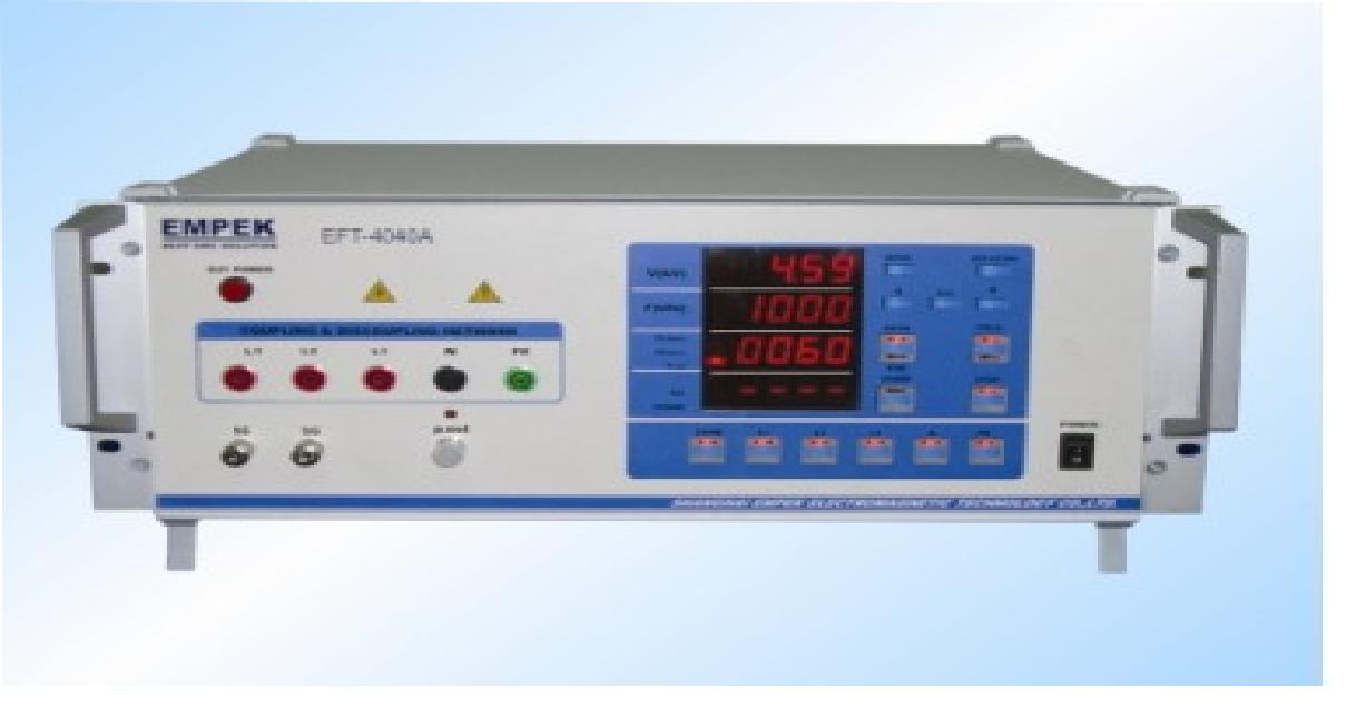 上海易湃科電磁技術有限公司的EFT系列快速瞬變脈沖群發生器產品全面達到并超過最新IEC61000-4-4和GB/T17626.4標準的要求,是評估電子電器產品脈沖群抗擾度性能的有力武器,具有可靠性高、波形穩定、使用方便等諸多優點,特別是其中的A、B系列產品更是全新的智能化產品,為您的試驗過程帶來非凡體驗。