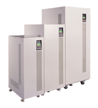 ·3C3系列產品特色說明: 雙轉換純在線3相輸入、3相輸出UPS 3C3系列采用的是雙轉換的純在線架構,如圖1,經過濾波器后,再經PFC ( Power Factor Correction,功率因素修正器 ) 將交流轉換成直流,最后經過逆變器 ( Inverter ) 將直流再轉換成交流輸出,這是目前解決電源問題的最佳架構。此架構幾乎可以完全解決所有的電源問題,如斷電、市電高、低壓、電壓瞬時跌落、減幅振蕩、高壓脈沖、電壓波動、浪涌電壓、諧波失真、雜波干擾、頻率波動等電源題。