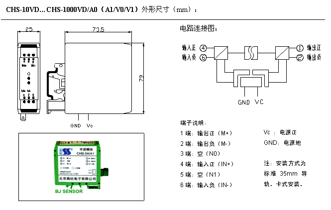 SENSOR直流電壓變送器CHS-VD/10V...1000V(DC)