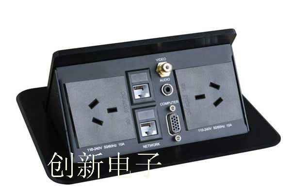 多功能桌面插座為用戶提供了一個緊湊、美觀的桌面信號連接解決方案。它采用簡單易用的接入方式,我們在連接視頻、音頻、計算機(jī)視頻、網(wǎng)絡(luò)、電話、電源等接口時,輕按連接盒的頂部,連接盒即時釋放機(jī)械鎖定器,接口盒面被氣撐式結(jié)構(gòu)平滑打開,完全展現(xiàn)出連接接口面。使用完畢后,只需輕輕按下接口盒蓋,機(jī)械鎖定器隨即鎖定連接盒。鎖定后的連接盒與桌面保持齊平,所有接口被巧妙地隱藏起來,盒面美觀整潔并與桌面渾然一體。