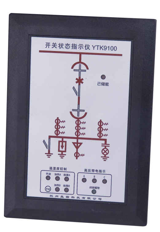 YTK9100系列開關狀態指示儀集一次回路模擬圖、開關狀態、斷路器位置、接地閘刀位置、彈簧儲能狀態、高壓帶電指示、高壓帶電指示,高壓帶電閉鎖以及自動(手動)加熱除濕控制、溫度控制,加熱器斷線指示等多功能于一體,這些指示功能可分可合,用戶可根據需要選擇。只要指定不同的訂貨型號,并提供一次方案圖,即可根據客戶的高低壓柜一次接線圖來設計面模圖,以反應開關柜內實際的一次接線結構和開關及帶電狀態。該產品以一體化布局配套裝備于開關柜,將簡化開關柜的面板結構設計,美化開關柜的面板布局,完善開關狀態的指示功能和安全性能。