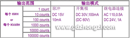 輸出: 有效功率/有效電能組合;無效功率/無效電能輸出透過內部可程序切換開關選擇