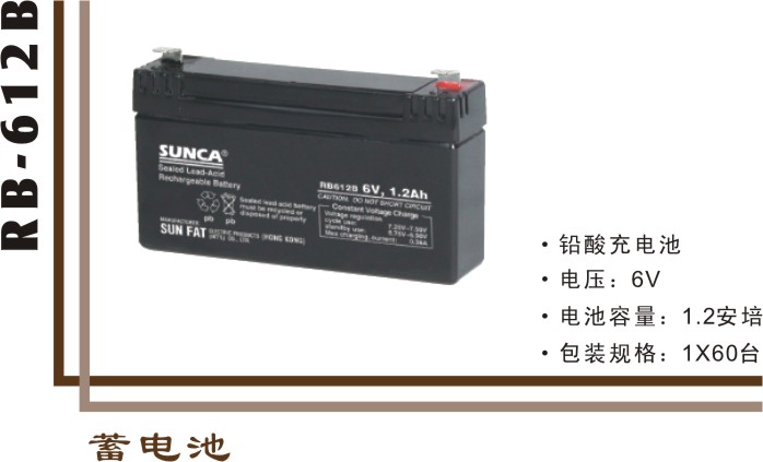 6V1.2鉛酸充電池 RB612B SUNCA蓄電池產品詳情