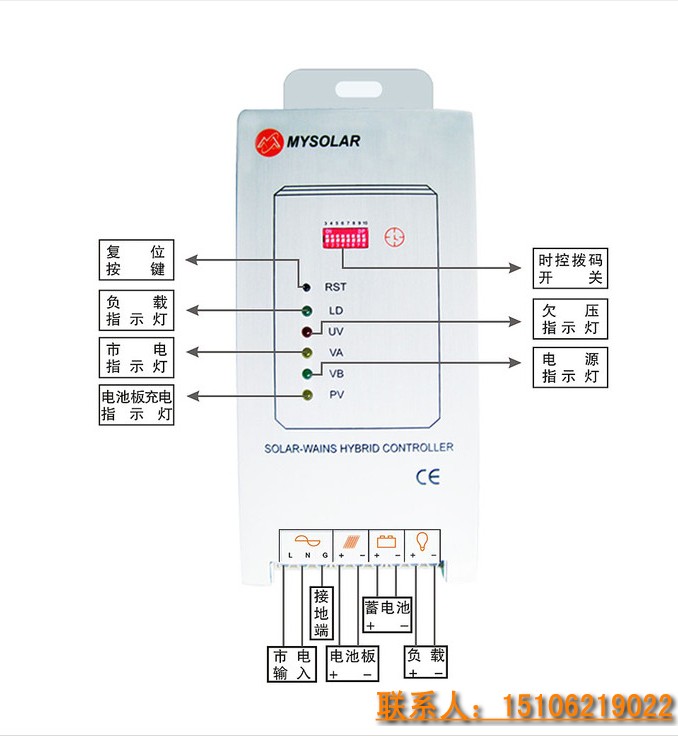本控制器專為太陽能與市電互補切換直流供電系統設計,并使用了專業的控制方案。具有充滿、過放自動關斷、恢復等全功能保護措施,詳細的充電指示、蓄電池狀態、負載及欠壓指示。