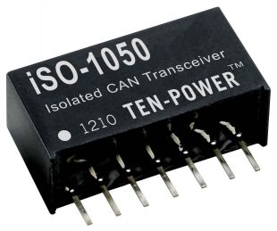 TEN-POWERiSO-1050模塊是一款完整的隔離型CAN收發器。它無需使用外部組件。單個電源即可工作,實現線路收發器和邏輯接口之間2500VDC的隔離。該器件非常適合于那些接地環路斷開的系統,允許很大的共模電壓變化下保證不間斷的通信。