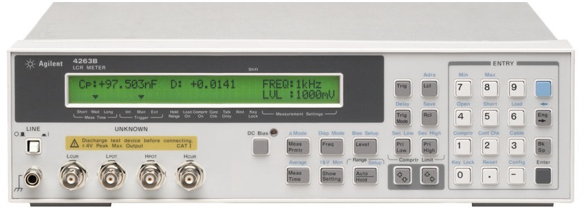 4263B LCR表是安捷倫科技公司物超所值的低端LCR表,專門用于對生產線元件進行評估,以及對臺式應用進行基本阻抗測試。除了在測試頻率為100 Hz、120 Hz、1 kHz、10 kHz和100 kHz (20 kHz,使用選件002)時可進行基本的阻抗測量外,4263B還可以利用選件001方便地進行變壓器測量。