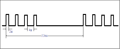 脈沖頻率:1)連續四個脈沖串時,如圖所示。f=300Hz(T=3.3ms)