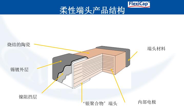 - 柔性端頭的產品包括:陶瓷電容,EMI 表貼濾波器,浪涌安規電容,和X2Y 濾波器