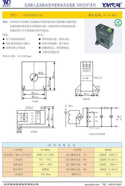 型號:TAD3523FT-02  測量范圍:0.1A-80A