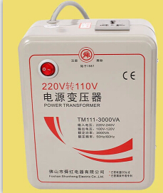 輸入電壓:AC220~240V,輸出電壓:AC100V~120V,功率:3000VA(適合2500W以下的電器使用),重量:6.5公斤,體積:20*16*9.5cm