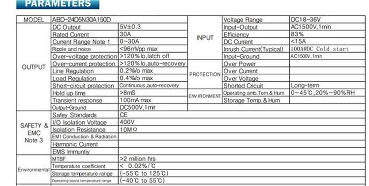您的位置:電源在線首頁>>產品中心>>電源產品分類>>模塊電源(DC/DC)>>LAVALEE車載電源ABD-24D5N30A150D產品詳情