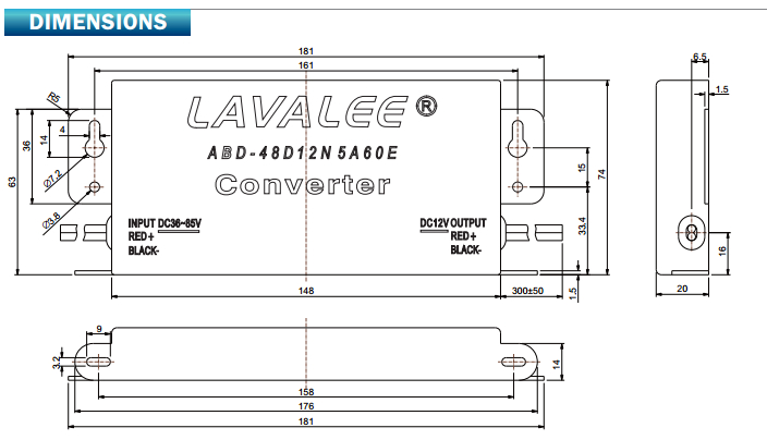 拉瓦雷LAVALEE 車載電源ABD-48D12N5A60E