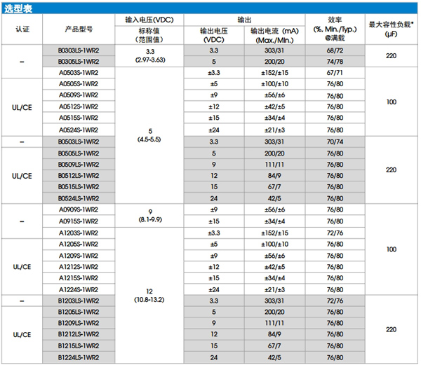 A_S-1WR2 & B_LS-1WR2 系列產品是專門針對線路板上分布式電源系統中需要產生一組與輸入電源隔離的電源的應用場合而設計的。