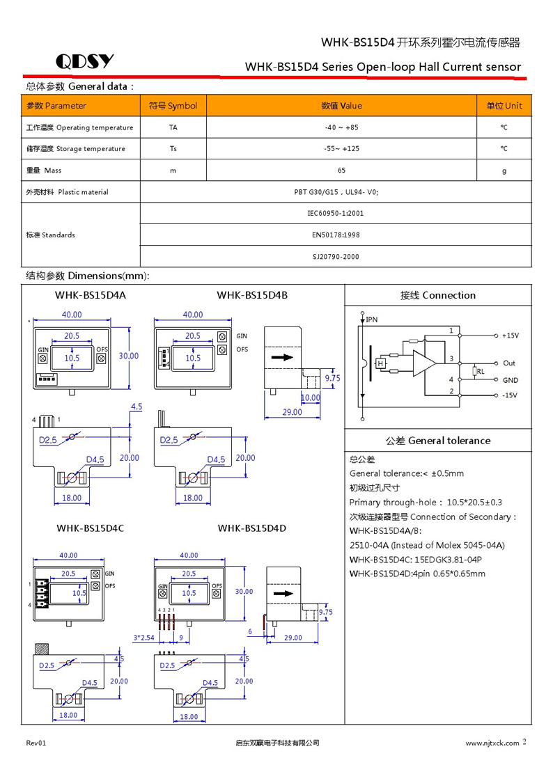 (開環(huán))霍爾電流傳感器WHK-BS15D4產(chǎn)品詳情