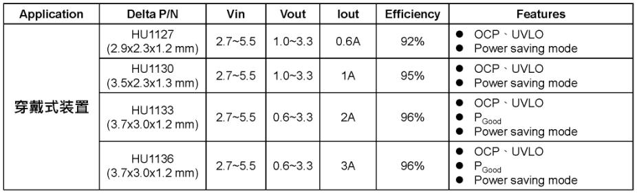 臺達模塊電源,以下列舉針對穿戴裝置的建議產品供您參考: