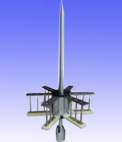 LTP系列避雷針主要由激發(fā)器從自然界的電場中吸收并貯存能量。反射器及避雷器針尖與大地有良好的電氣連接,處于等電位狀態(tài)。所以通常情況下,激發(fā)器與反射器之間有電場強度,每當(dāng)雷激發(fā)器與反射器之間有電場強度,每當(dāng)雷閃發(fā)生前,電場強度會迅猛增大,激發(fā)器與反應(yīng)器之間的電位差大致相當(dāng)于雷云與大地之間的電位,它們之間的電壓降迅速增加會造成尖端打火,并使尖端周圍的空氣離子化,形成尖端放電現(xiàn)象。避雷針的中央收集桿和激發(fā)器EXCITERS之間的電場迅速增加而造成尖端產(chǎn)生的空氣離子化可于極短及準(zhǔn)確的時間內(nèi)放電,因大量電離子的存在,從而使自然的Corona效應(yīng)減低,產(chǎn)生一預(yù)期上行放電通道,可迅速、安全地將雷電截擊及安全地泄放到大地。